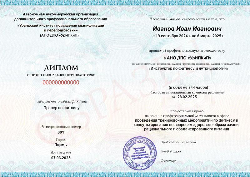 Курс обучения Инструктор по фитнесу и нутрициологии (844ч)