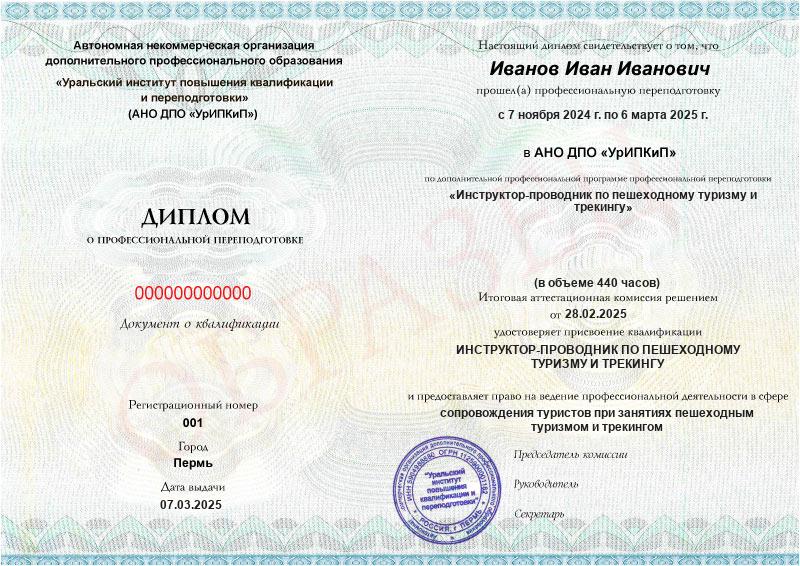 Профессиональный инструктор может организовывать походы разной сложности и выполнять обязанности сопровождающего только после аттестации. Чтобы пройти ее, нужно иметь диплом о высшем или среднем профессиональном образовании либо иной документ, подтверждающий профильное обучение. К таким относится диплом о профпереподготовке, удостоверение о повышении квалификации, свидетельство об окончании курсов.