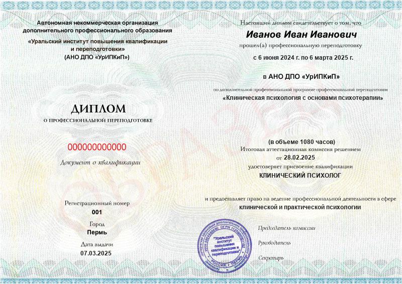 Это уже второй курс, который я прохожу в АНО ДПО «Уральский институт повышения квалификации и переподготовки». Хочу отметить удобную организацию учебного процесса, но больше всего - качество подачи материала и содержание образовательных программ. Ваш институт - это настоящая находка для практикующего психолога, который ценит свое время и кому важно регулярно повышать свою квалификацию. Рекомендую вас коллегам, знакомым, некоторые уже закончили курсы по моей рекомендации и также планируют возвращаться к вам снова. Отдельная благодарность преподавателям за развернутую обратную связь и кураторам за чуткое сопровождение учебного процесса. Уже нахожусь в выборе новой образовательной программы, ведь учиться с вашей командой одно удовольствие! Желаю успехов и процветания Уральскому институту и новых интересных программ профессиональной подготовки!