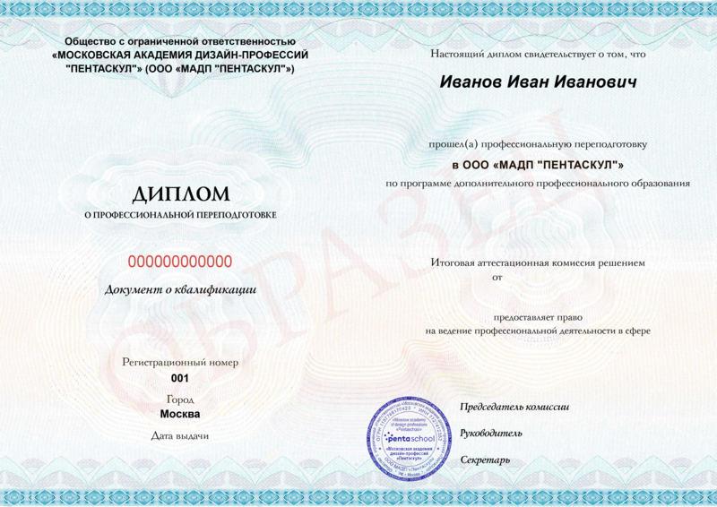 • Московский диплом о профессиональной переподготовке установленного образца с присвоением квалификации «Дизайнер ландшафтного проектирования».
