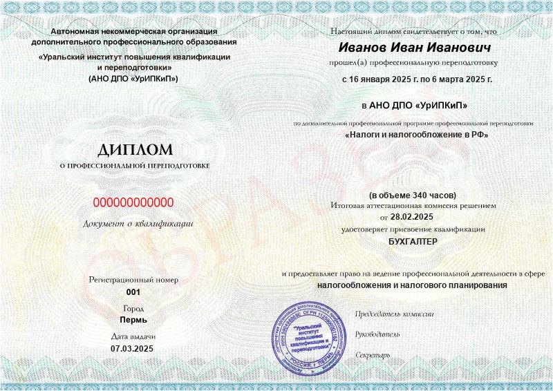 - Образец диплома о профессиональной переподготовке.