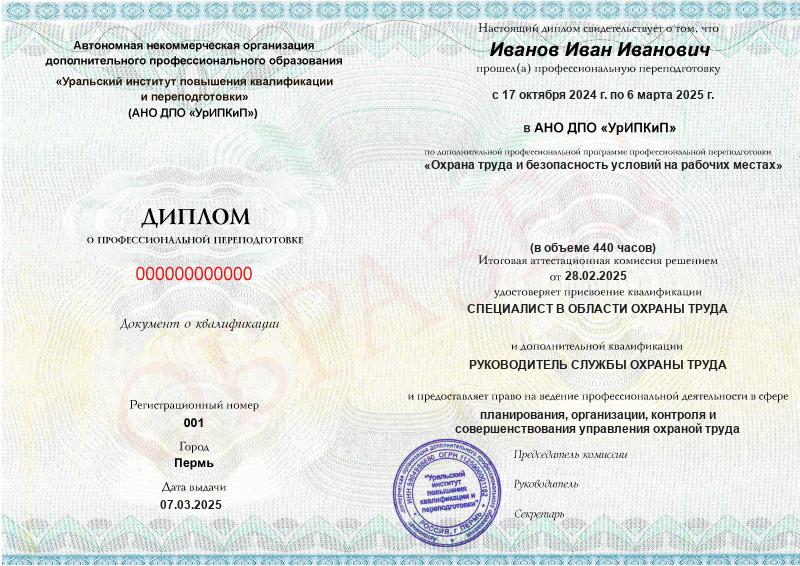 Да, дипломы и удостоверения оформляются в соответствии с действующим законодательством РФ. Документы печатаются на специальных бланках, заверяются печатью АНО ДПО «УрИПКиП».