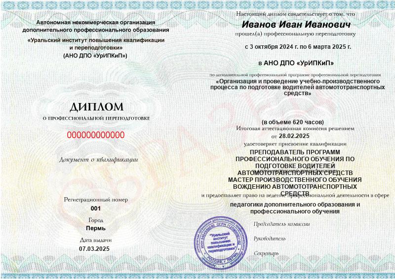 Заполненные образцы выдаваемых документов есть в описании учебных курсов и на странице «Лицензия. Документы», а также на главной странице официального сайта АНО ДПО «УрИПКиП».