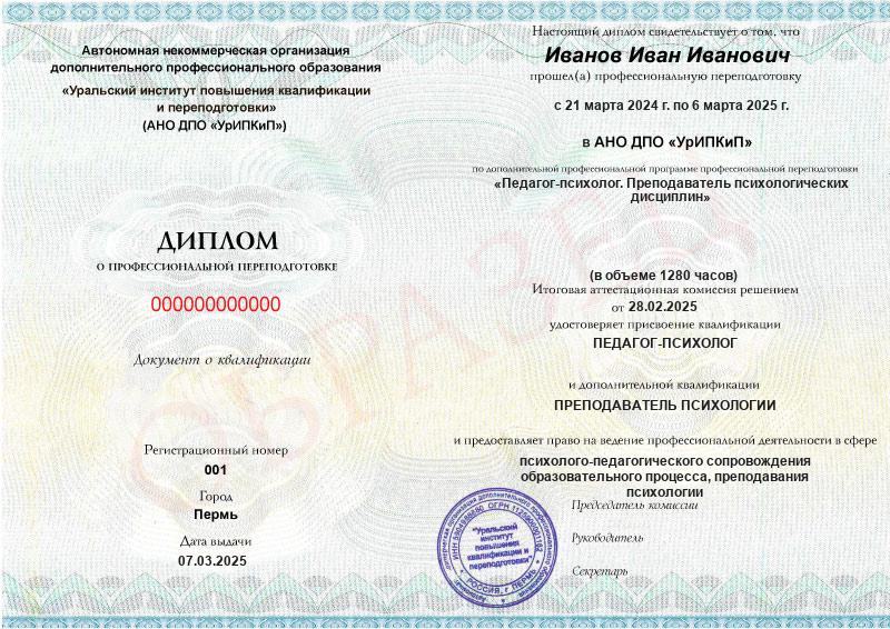 Курс обучения Педагог-психолог. Преподаватель психологических дисциплин (1280ч)