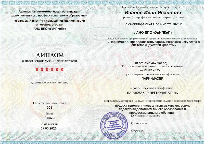 - 2 квалификации: Парикмахер + Парикмахер-преподаватель