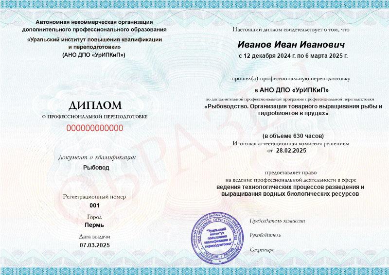 Профессиональная переподготовка по рыболовству позволит вам заниматься организацией разведения рыб в рыбоводческих хозяйствах. Если вы собственник такого бизнеса или планируете начать своё дело в этой сфере, полученные знания помогут вам организовать эффективное рыбопроизводство и быстро окупить вложенные инвестиции.