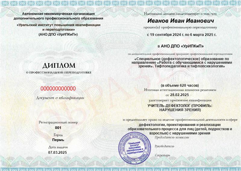Да, дипломы и удостоверения оформляются в соответствии с действующим законодательством РФ. Документы печатаются на специальных бланках, заверяются печатью АНО ДПО «УрИПКиП».