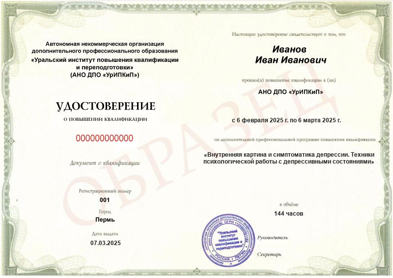 - Повышали квалификацию в АНО ДПО «УрИПКиП» – вам будет выдано удостоверение.